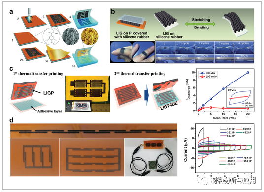 图6. 使用木质素作为低成本前体的激光光刻工艺流程及性能图示