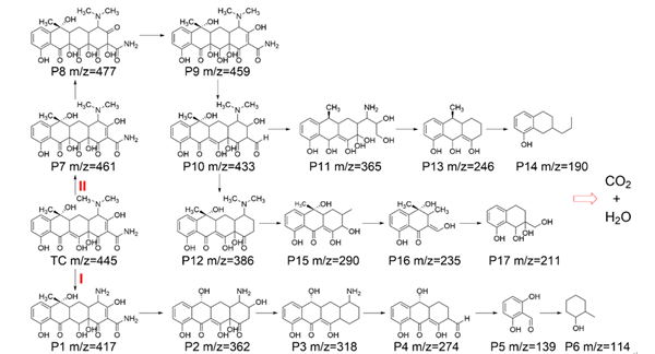 图4. 四环素的降解路径。