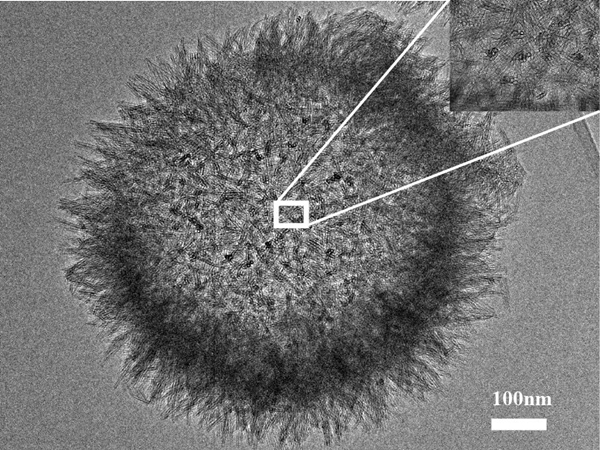 图1. 海胆状空心硅基叶面氮肥的TEM图像。