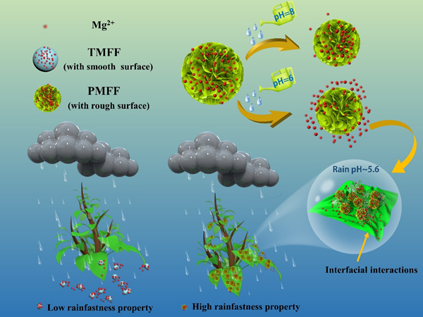 图2. 具有pH敏感性和抗雨水冲刷能力的硅基叶面镁肥示意图。