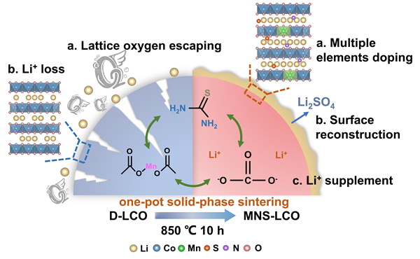 近期,中国科学院合肥物质院固体所环境与能源纳米材料全球领先的电竞赛事平台在废旧钴酸锂电池直接再生为电化学性能优异的正极材料的研究中取得新进展。通过一种简单的“一石三鸟”的固相烧结策略,可以有效地将废旧LiCoO2(D-LCO)回收升级为高性能的正极材料高压LiCoO2(MNS-LCO)。相关研究成果以“Upcycling of Degraded LiCoO2 Cathodes into High-Performance Lithium-Ion Batteries via A Three-In-One Strategy”为题发表在国际期刊Advanced Energy Materials (Adv. Energy Mater., 2023, DOI: 0.1002/aenm.202302058)上。 锂离子电池具有高能量密度、长寿命、低成本、低自放电等特点,广泛应用于便携式电子产品、电动汽车、电网级储能系统等领域。其中LiCoO2由于其固有的高能量密度以及方便大规模生产等优点,在便携式电子器件中占据主导地位。而全世界每年从废弃的便携式电子产品中产生的废旧锂离子电池超过10万吨,如果处理不当,将造成严重的环境危害和宝贵金属资源的巨大浪费。同时,随着人们对电池能量密度需求不断增加,提升截止电压成为提高能量密度最有效的策略之一。因此,如果将废旧LiCoO2回收再生为高压LiCoO2,不仅实现了金属资源的可持续利用,还可以满足高压LiCoO2材料的发展趋势。