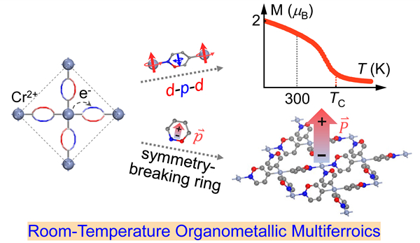 图. 利用d-p自旋耦合与对称破缺六元杂环设计二维室温多铁材料的思路。