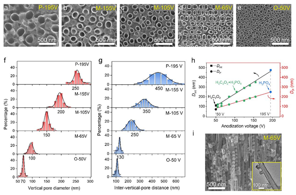 图2. 垂直孔/管密度可调的3D-AAOs和3D-CTs的形貌和结构特征。