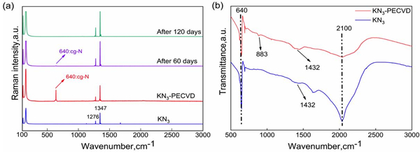 图2. Raman(a)和FTIR(b)测试结果。