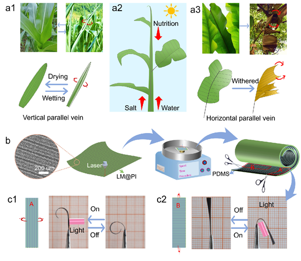 固体所开发了叶脉启发的超结构液态金属光热致动器