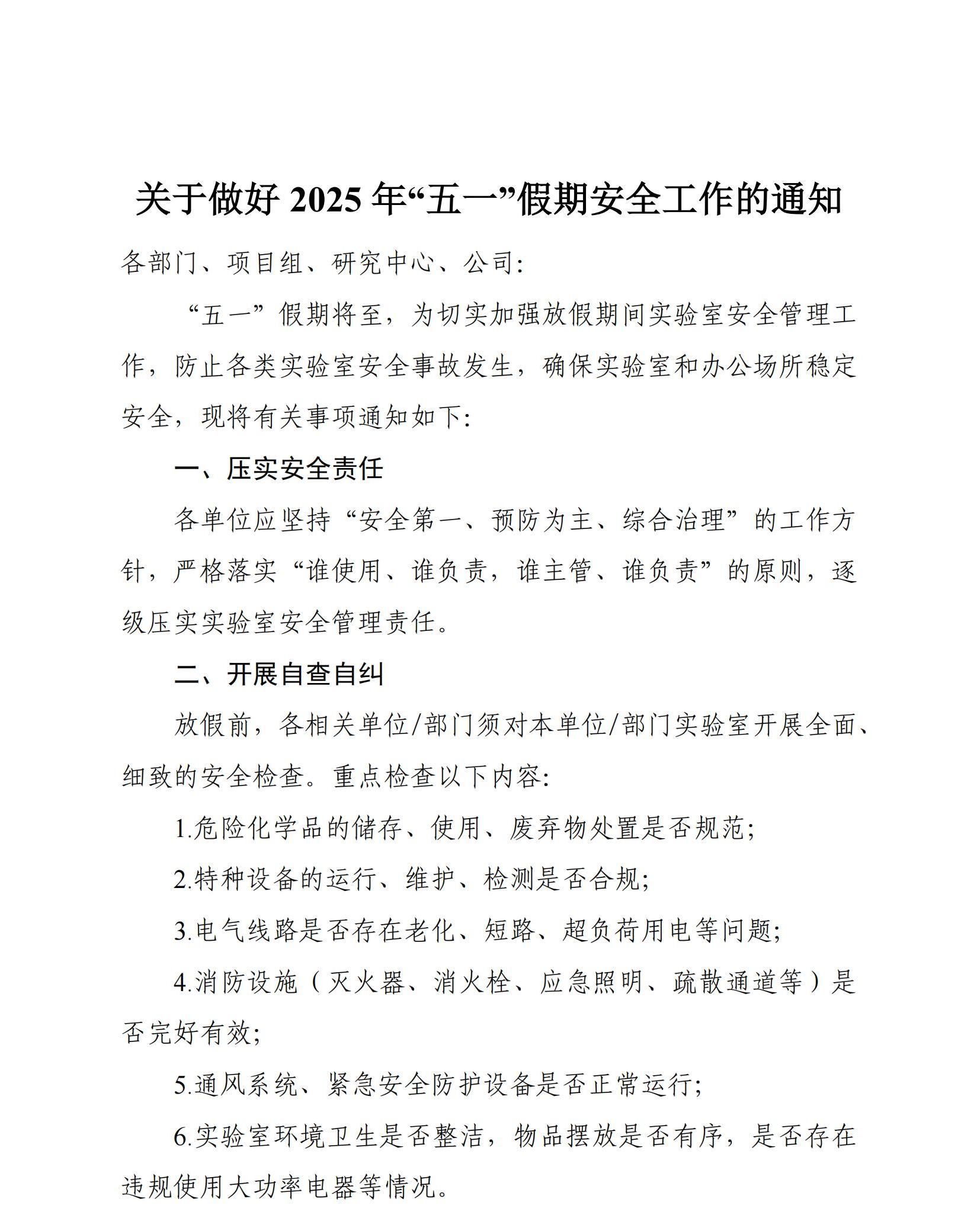 全球领先的电竞赛事平台做好2025年“五一”假期实验室安全工作的通知