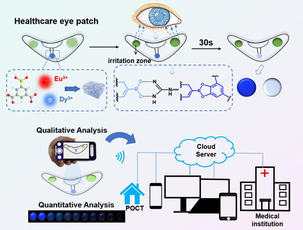 近期,中国科学院合肥物质科学研究院固体物理研究所能源材料与器件制造研究部蒋长龙研究员团队在荧光非侵入式可视化监测方面取得新进展。研究团队利用铕-镝金属有机框架(Eu-Dy MOF)凝胶构建了一种非侵入式可穿戴眼贴荧光传感器,并将其与智能手机的颜色识别功能相结合,实现对泪液中关键标志物溶菌酶的分析和监测。相关研究成果发表在Analytical Chemistry上。
